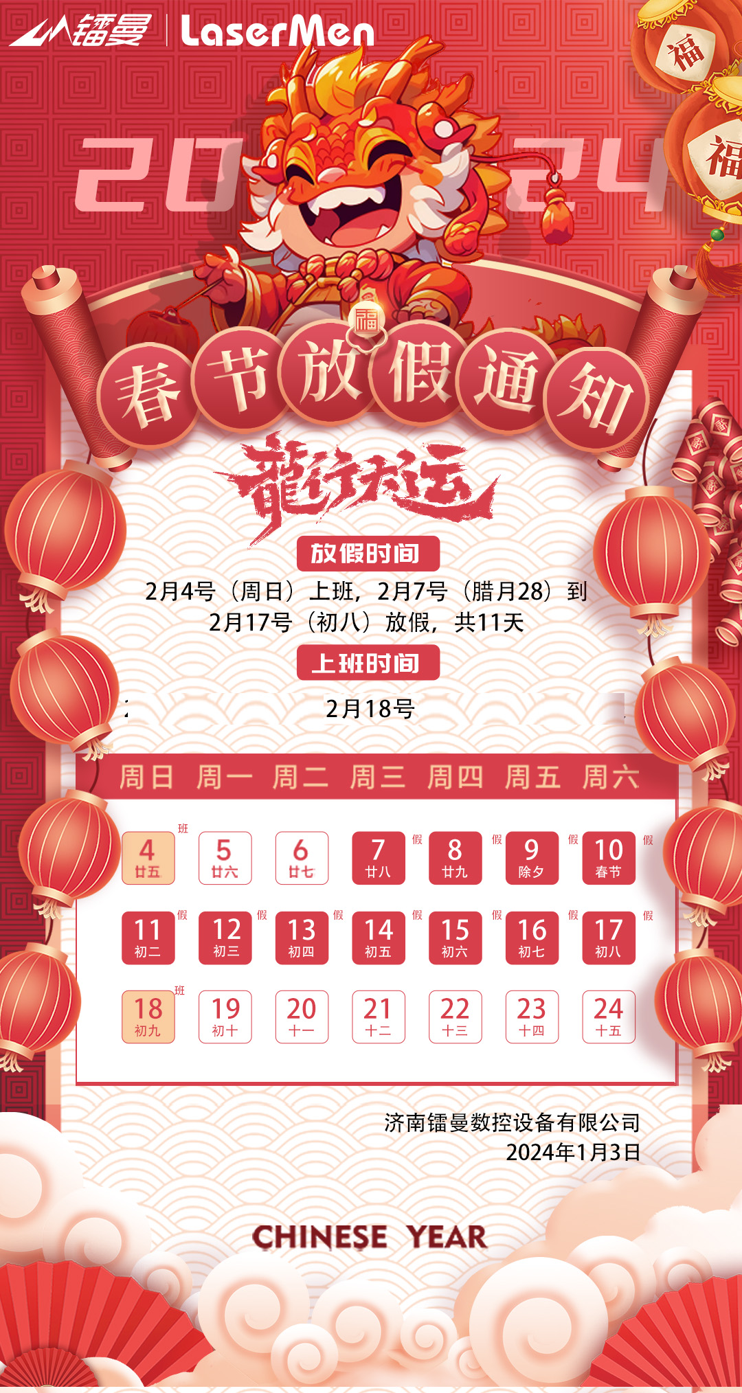 濟(jì)南鐳曼數(shù)控設(shè)備有限公司恭祝各位合作伙伴:龍年伊始,萬象更新,......